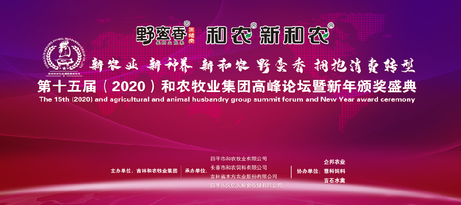 2019年12月31日 由吉林和農(nóng)牧業(yè)集團(tuán)主辦,四平和農(nóng)牧業(yè)承辦,長春和農(nóng)、本方農(nóng)業(yè)、久億久糧食收儲, 協(xié)辦企邦農(nóng)業(yè)、慧科飼料、吉石水禽 "新農(nóng)業(yè) 新種養(yǎng) 新和農(nóng) 野蠻香 擁抱消費轉(zhuǎn)型" —— 第十五屆和農(nóng)牧業(yè)集團(tuán)高峰論壇暨新年頒獎盛典在長春凱悅酒店落下帷幕。