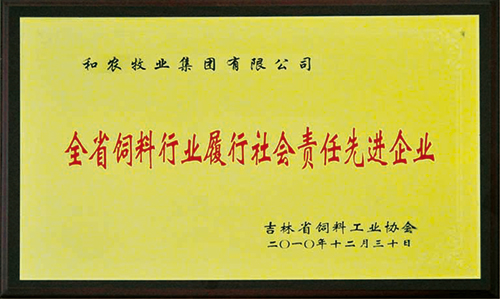 全省飼料行業(yè)履行社會責任先進企業(yè)